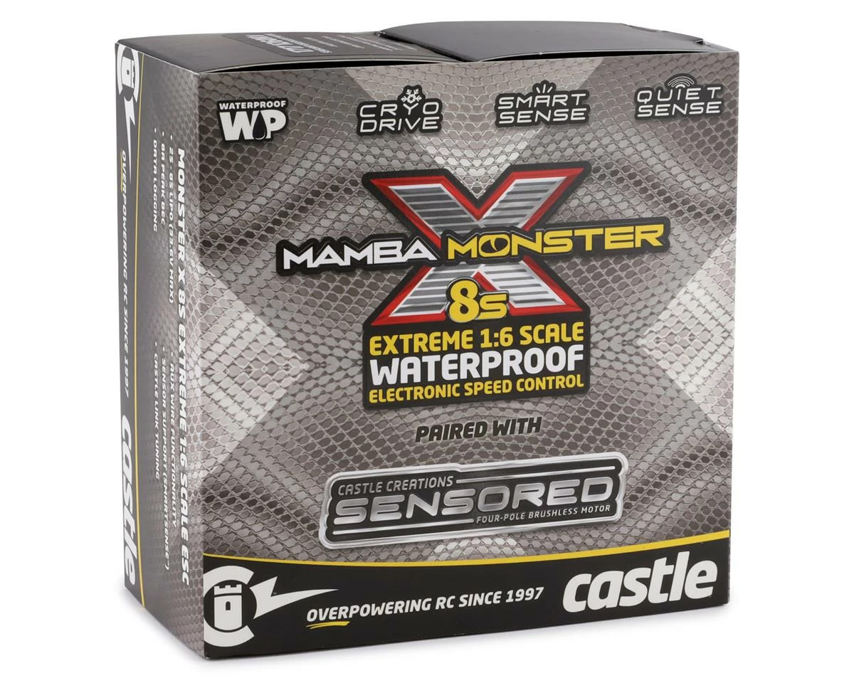 NOTE: A Mamba Monster X 8S service advisory has been released – please read this statement from Castle Creations. Castle has put a temporary hold on using D-Wind type and motors with Kv higher than 2,000Kv. A software update to correct this is coming in the next few weeks.