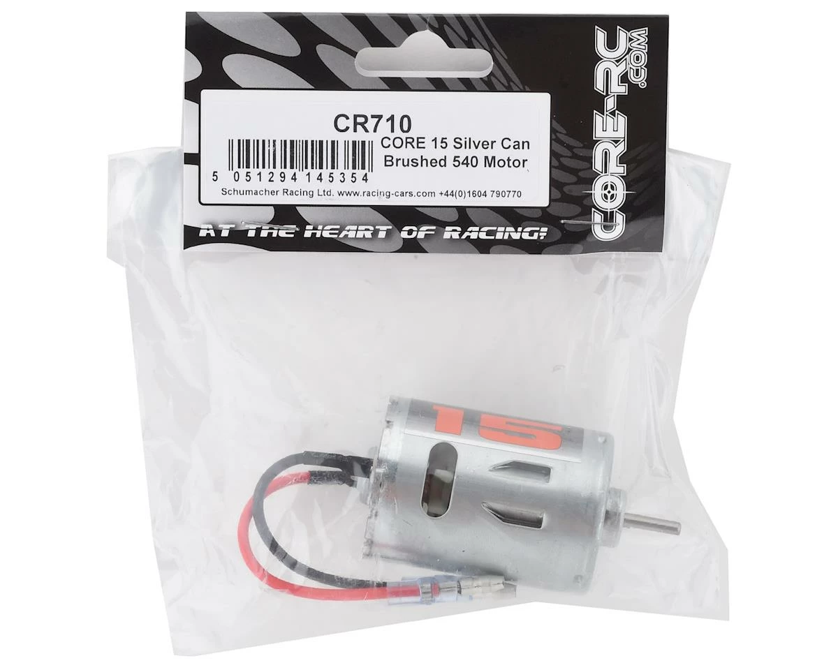 This is a Core-RC 15T Silver Can Brushed Motor, a standard 540 can size for use in 1/10th scale or 1/12th scale vehicles.