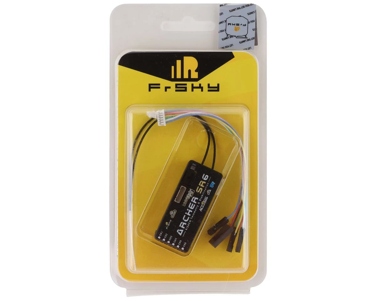 This is an FrSky SR6 Archer ACCESS Receiver. The Archer SR6 are gyro-stabilized receivers with a built-in 3-axis gyroscope and 3-axis accelerometer, they have 6 high-precision PWM channel outputs and features multiple flight modes and configuration methods. They support full-range signal strength with dual detachable antennas it guarantees optimal antenna-reception and maximum range. In addition to all this, the SR6 can also be used as a redundancy receiver along with any other FrSky ACCESS capable receiver equipped with an SBUS port.