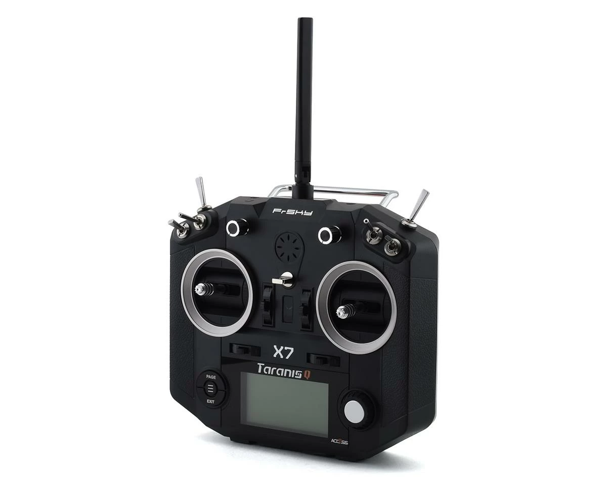 The Taranis Q X7 ACCESS features 24 channels with a faster baud rate and lower latency, thanks to its high-speed module digital interface. Just like the rest of the ACCESS transmitters, the Q X7 provides a secure and reliable link, along with wireless firmware, making it compatible with the newest line of OTA receivers. The battery compartment uses two 18650 Li-Ion batteries and can be balance charged via the Mini USB interface. Additionally included is a FrSky 2s Lithium Ion Battery, so users have flexibility with their source of power.
