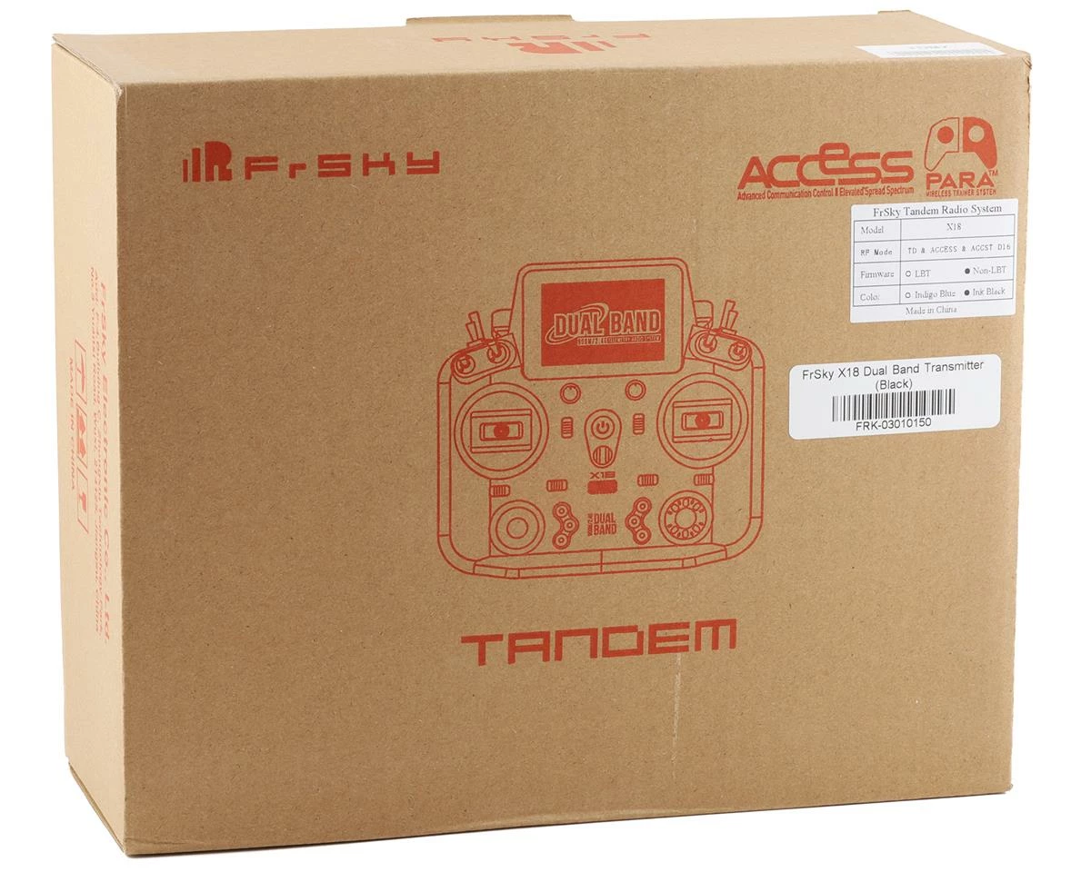 The FrSky Tandem X18 Dual Band Transmitter uses an updated ergonomic layout with an improved case design and the comfort of rubberized hand grips. With a similar layout to the X20 the X18 Tandem uses easy-to-reach sliders and switches, 4 standard stick trims with additional 2 extra trims added to provide more flexibility with flight attitude adjustments while operating the radio.