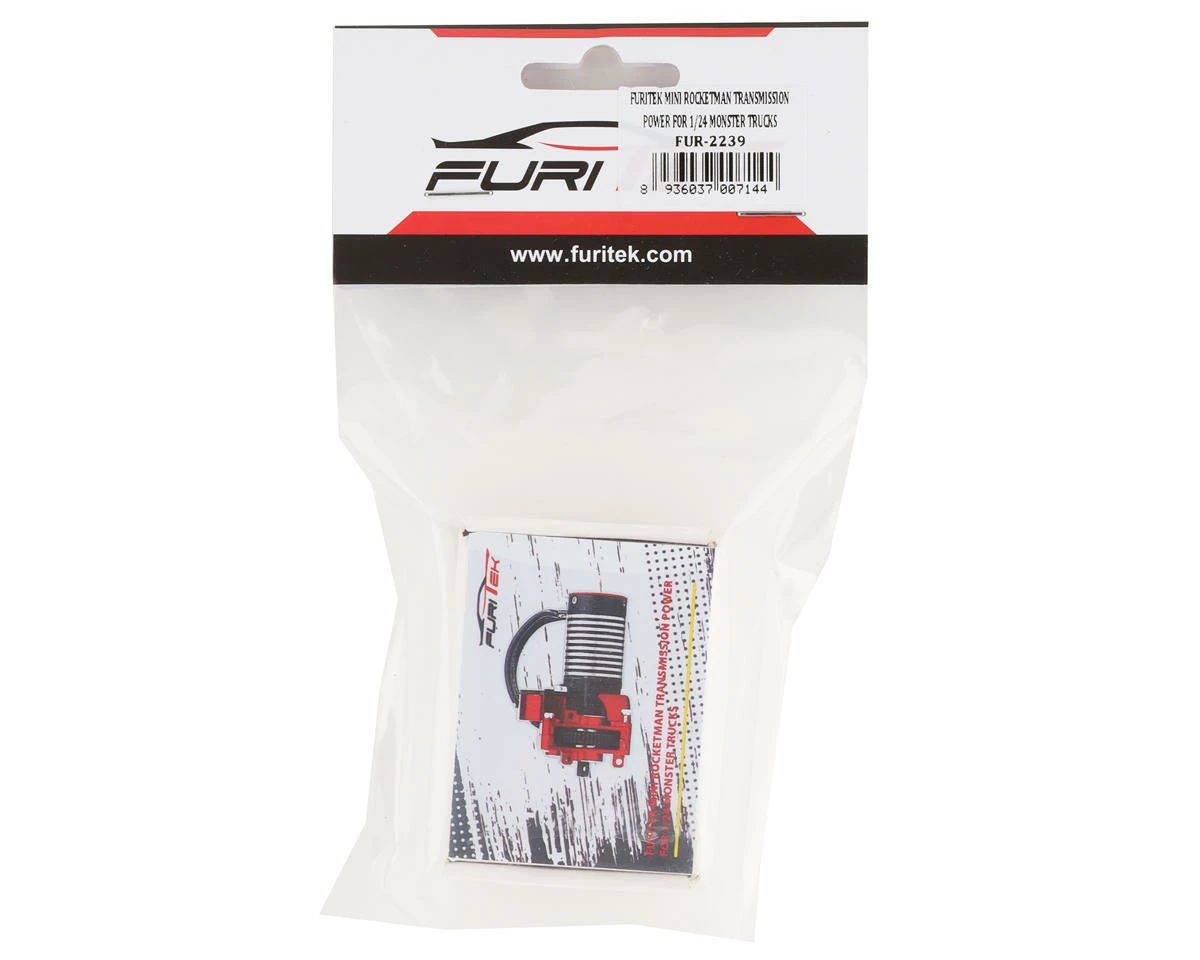 Furitek Mini Rocketman Transmission and Brushless Motor Set. Designed as a drop in upgrade for 1/24 monster trucks this kit offers a 3S LiPo capable Mini Godzilla brushless motor paired to the durable Micro Stellar transmission. Using the Mini Godzilla motor provides excellent throttle control, high efficiency and an abundance of power, while the Micro Stellar transmission uses metal gears and an aluminum housing to handle gobs of power. If you are ready to add next level performance to your 1/24 monster truck this is the kit for you!