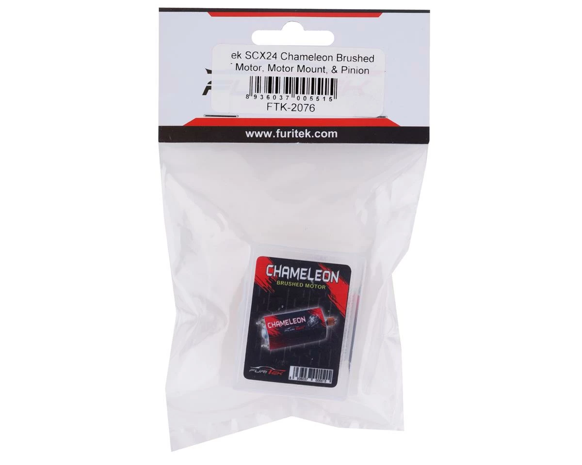 The Furitek SCX24 Chameleon Brushed Motor with Motor Mount and Pinion is a great option to increase the performance of your Axial SCX24. This motor features a brass pinion gear and metal and carbon brush technology allowing for a smooth power delivery. Completing the set is the Furitek carbon fiber motor mount for extreme performance and weight savings.