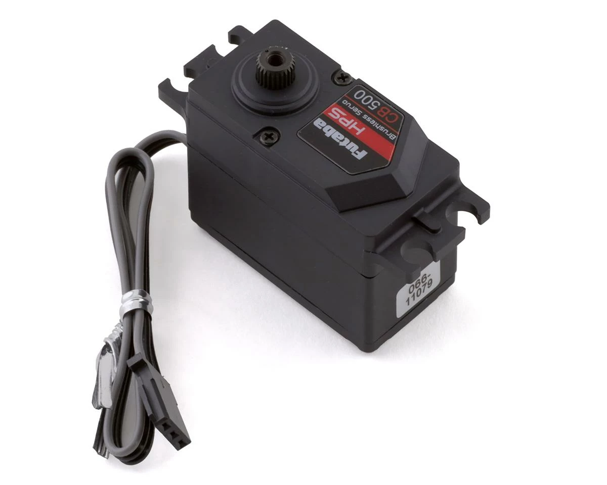 Futaba HPS-CB500 Brushless S.Bus2 Metal Gear Servo. This programmable servo boasts .06 transit speeds, with 354oz-in of torque, making it a great choice for 1/10 scale on/off road and 1/8 scale on/off road applications. Package includes servo, servo horn and mounting hardware.