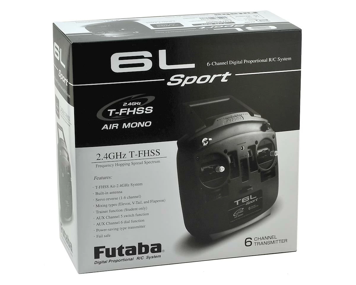This is the Futaba 6L Sport 2.4GHZ T-FHSS Mono 6-Channel Air System. Futaba’s 6L Sport is a trusted, dependable transmitter ideal for almost any model. It has everything you need, and nothing you don’t. Step up to the next level of flight control without breaking the bank. Ready for retracts, flaps, or other auxiliary functions? The 6L Sport is an easy and natural step up from a 4-channel system.