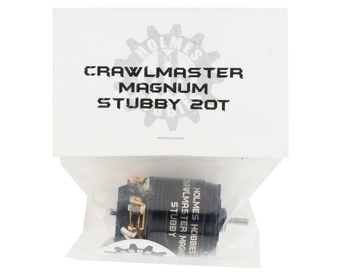The Holmes Hobbies CrawlMaster Magnum Stubby electric motor is a limited production motor that features high performance in a small package. These motors use a larger diameter rotor when compared to the standard CrawlMaster motor giving you extreme torque and the smooth startups. The “Stubby” version is smaller and lighter, specifically for competitive drivers who want top performance in a small and light package.