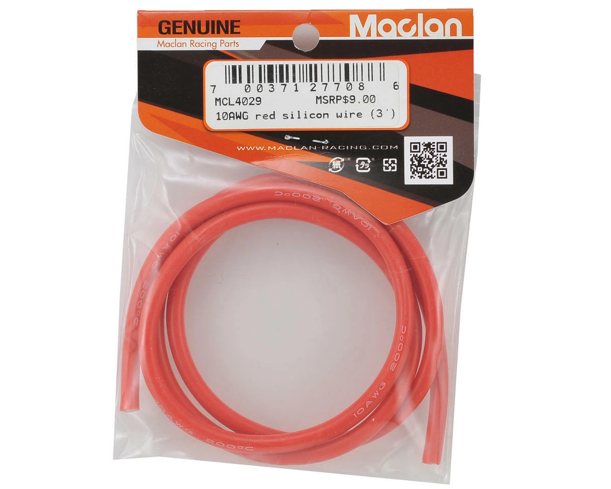 A package of Maclan Red 10AWG wire in 3 feet length.