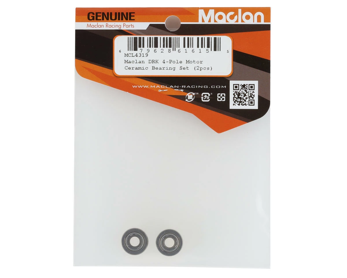 Maclan DRK 4-Pole Motor Ceramic Bearing Set. These replacement bearings are intended for the Maclan DRK Sensored 4-Pole Brushless No Prep Drag Motors. Package includes two bearings.