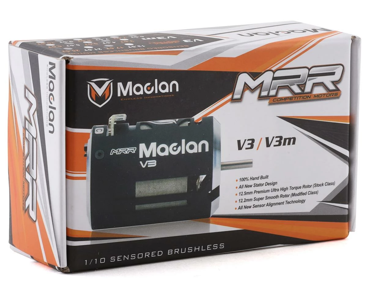 Maclan MRR V3m Competition Sensored Modified Brushless Motor. Based on the V2 platform these updated motors are ROAR approved and performance driven. Improvements in this generation are significant and will make a noticeable performance gain over previous versions.