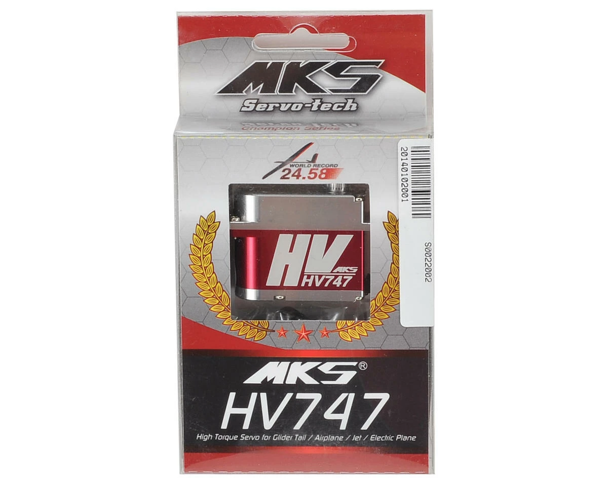 This is an MKS HV747 Titanium Gear High Speed Servo with Aluminum Case. This high speed servo is a great choice for glider, airplane and jet tail applications, and was used by Mr.O to achieve a 24.58s world record at the 2013 FAI-F3F World Cup!