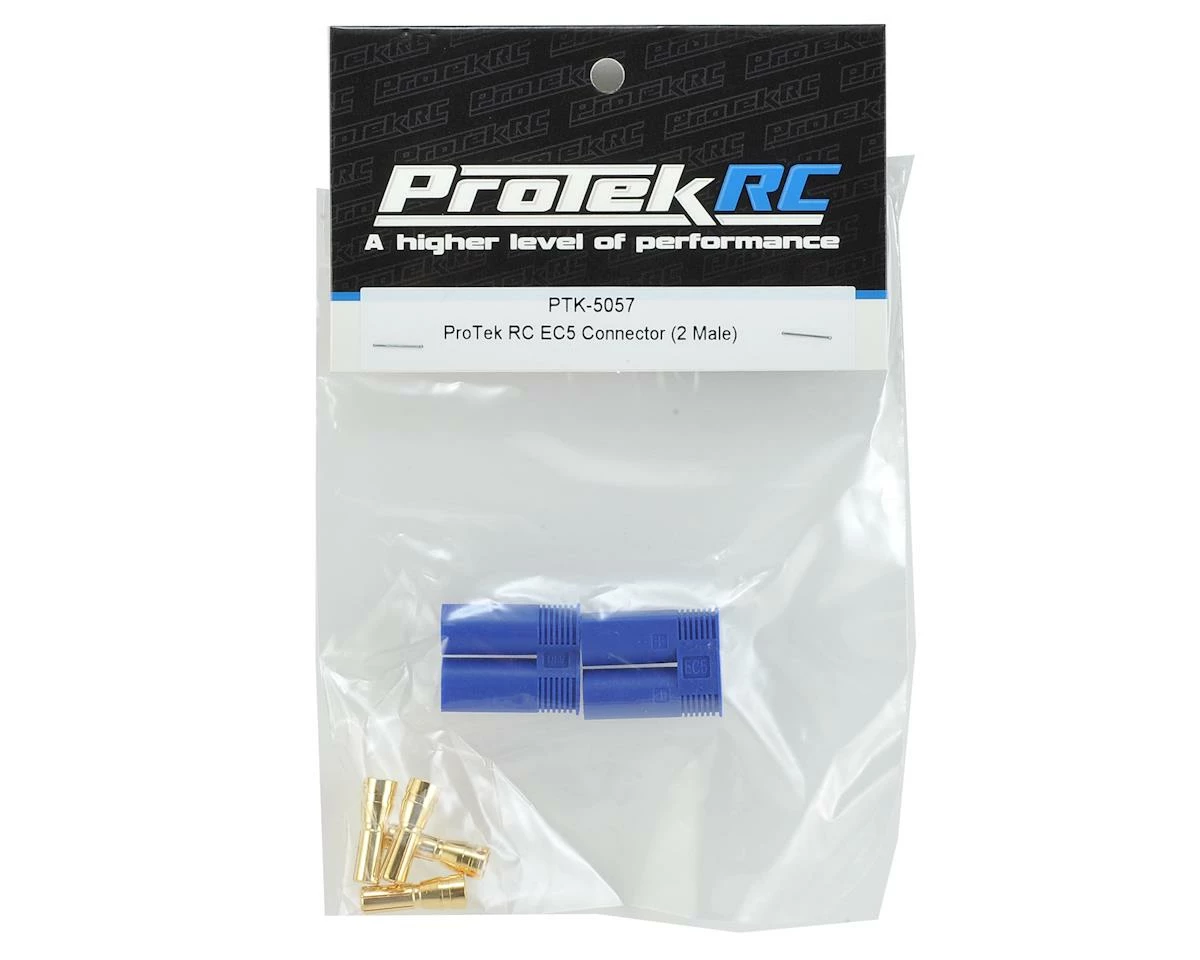 This is a pack of EC5 type connectors from Protek R/C. This pack includes two male plugs and four male bullet connectors.