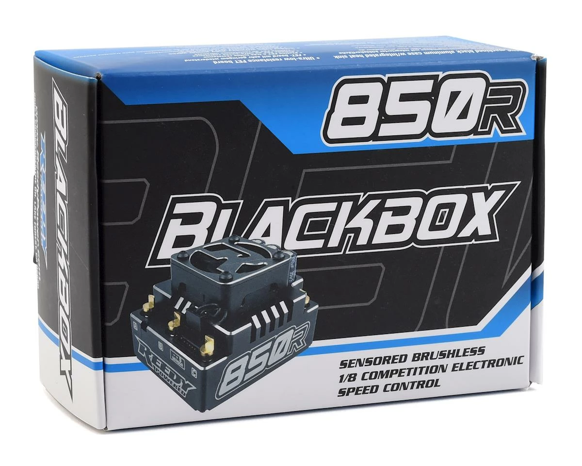 The Reedy Blackbox 850R Competition 1/8 Brushless ESC with PROgrammer 2 is track-tested and competition proven. This versatile and powerful ESC is capable of winning at the highest levels of competition. A wide range of precision adjustability, excellent throttle and brake feel, and durable high-quality hardware make the Blackbox 850R perfectly suited for 1:8 Buggy and Truggy applications.