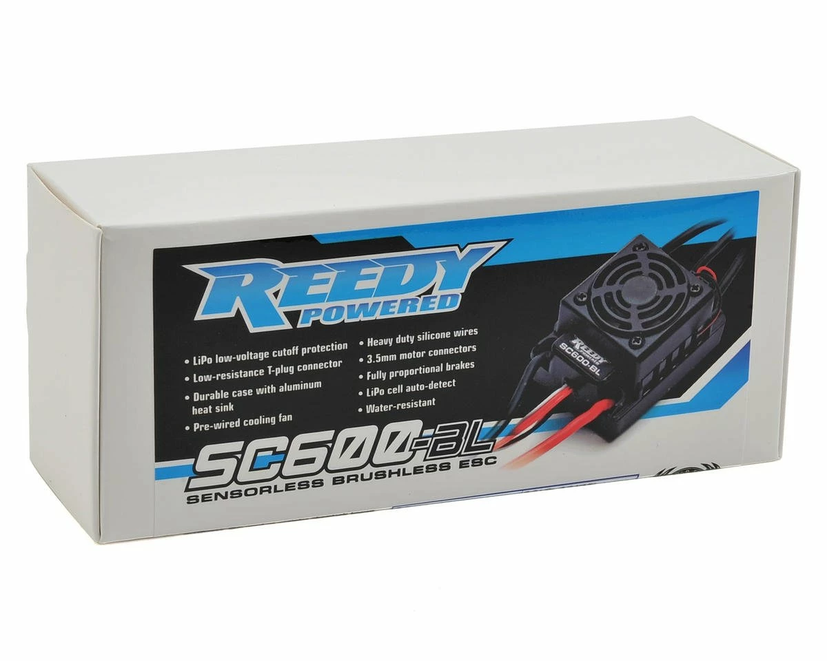 This is the Reedy SC600-BL Sensorless Brushless 2S-3S ESC. Reedy’s SC600-BL Brushless ESC is water-resistant for maximum reliability and features a compact footprint that allows for easy installation in most 1/10 vehicles. The latest electronics technology along with the design and engineering experience that is responsible for 29 World Championship titles has been incorporated into its design.