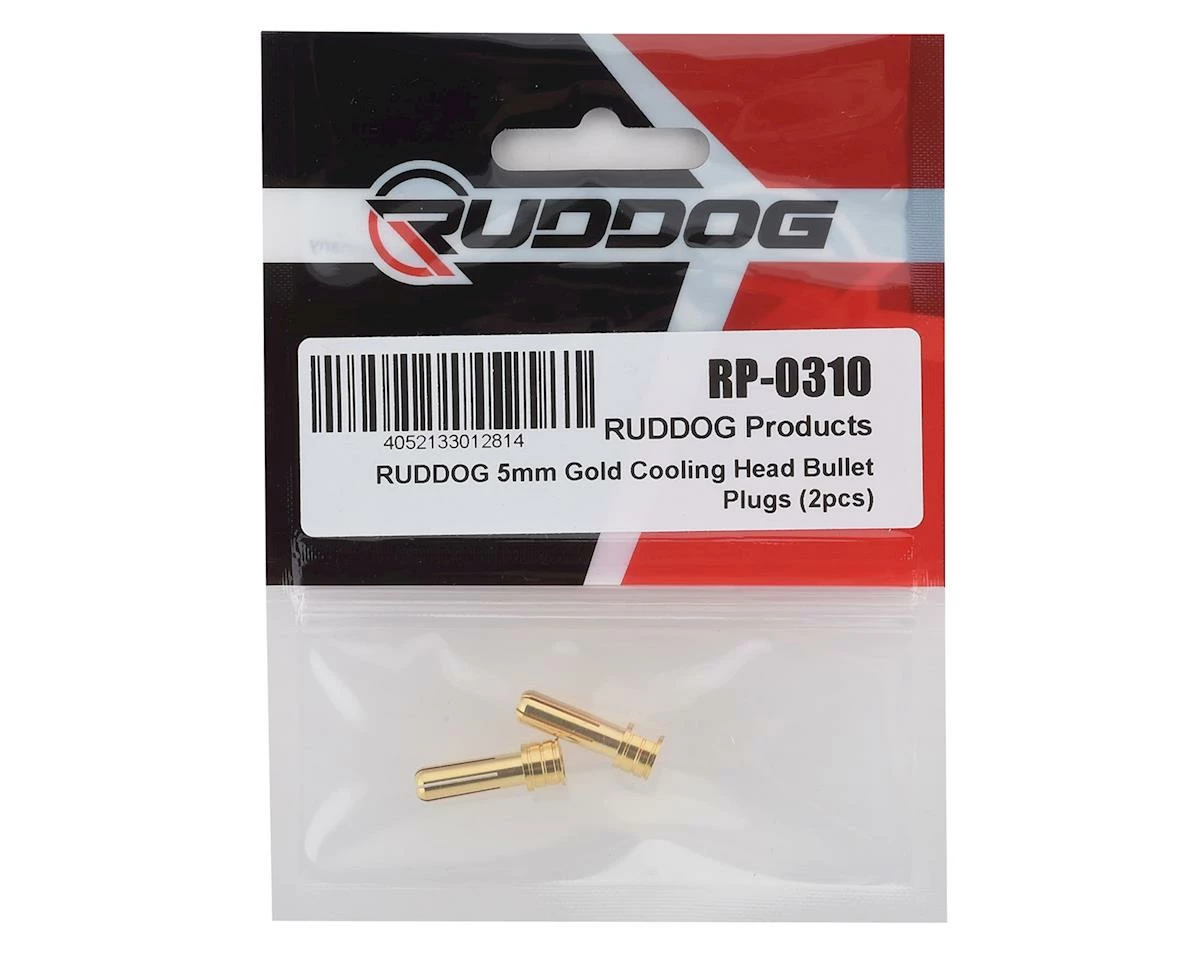 This is a set of two Ruddog 5mm Gold Cooling Head Bullet Plugs.