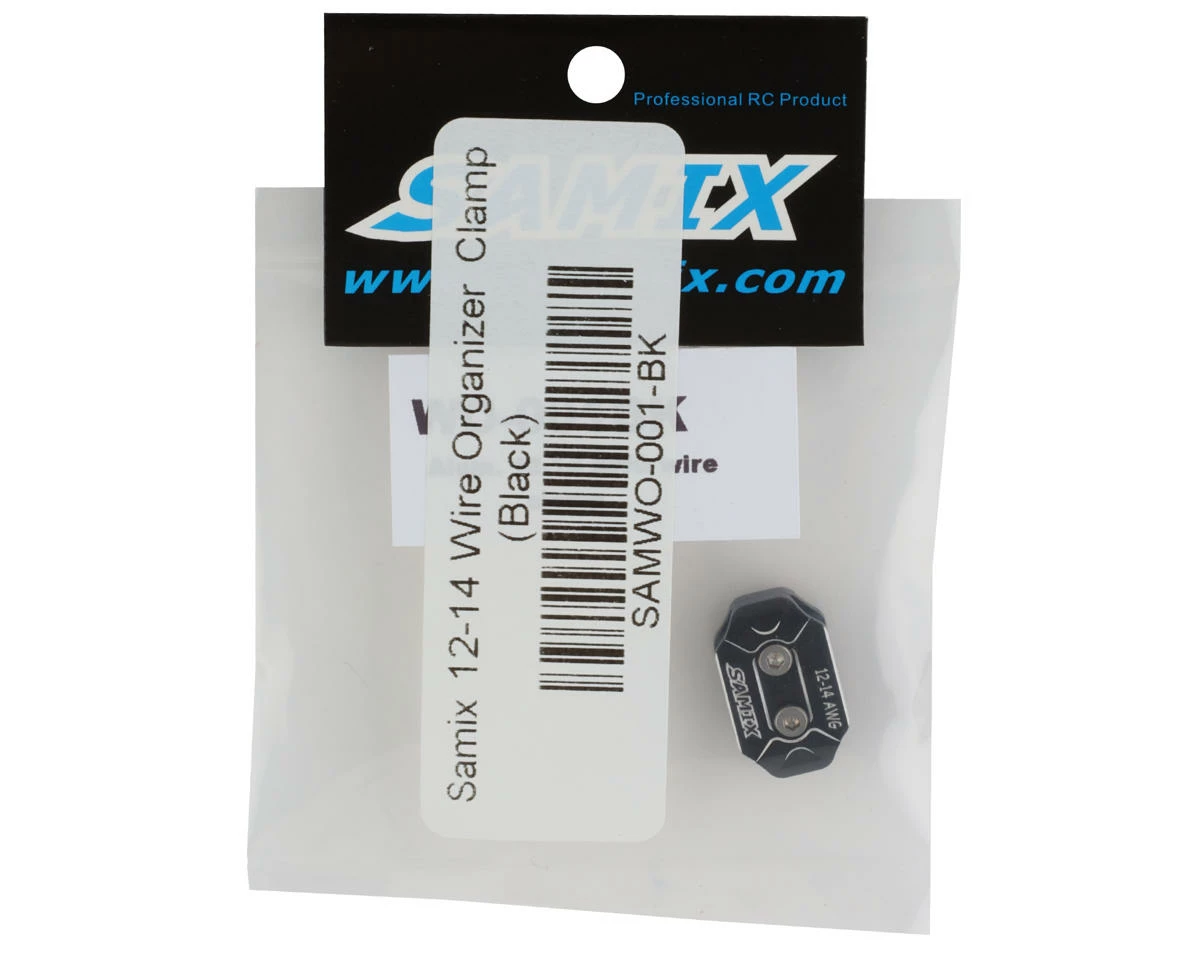 The Samix 12-14AWG Motor Wire Organizer Clamp is a great way to keep your motor wires clean and organized. Made from Machined aluminum, they come in multiple anodized finishes. Using the two flat-head Allen screws, the organizer splits in two to reveal three channels to separate the motor wires. Package includes one motor wire organizer clamp.