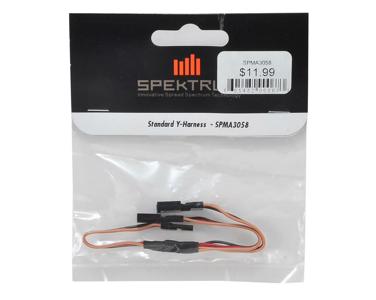 Spektrum RC 6″ Standard Y-Harness. This harness is compatible with Spektrum/JR receivers and servos, and is perfect for any application that requires two servos get plugged into the same receiver channel. In airplane applications this would be used to connect your aileron servos. This is useful in other applications as well as it will allow you to connect a servo and receiver battery into the same receiver port.
