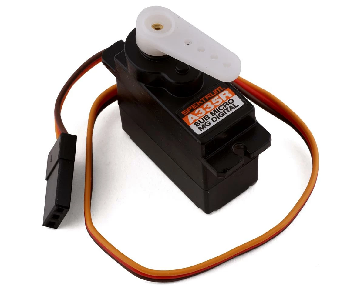 Spektrum RC A335R 9g Sub-Micro Metal Gear Digital Servo. This replacement servo is intended for the E-flite F-16 Falcon 80mm. Package includes one reversed servo.