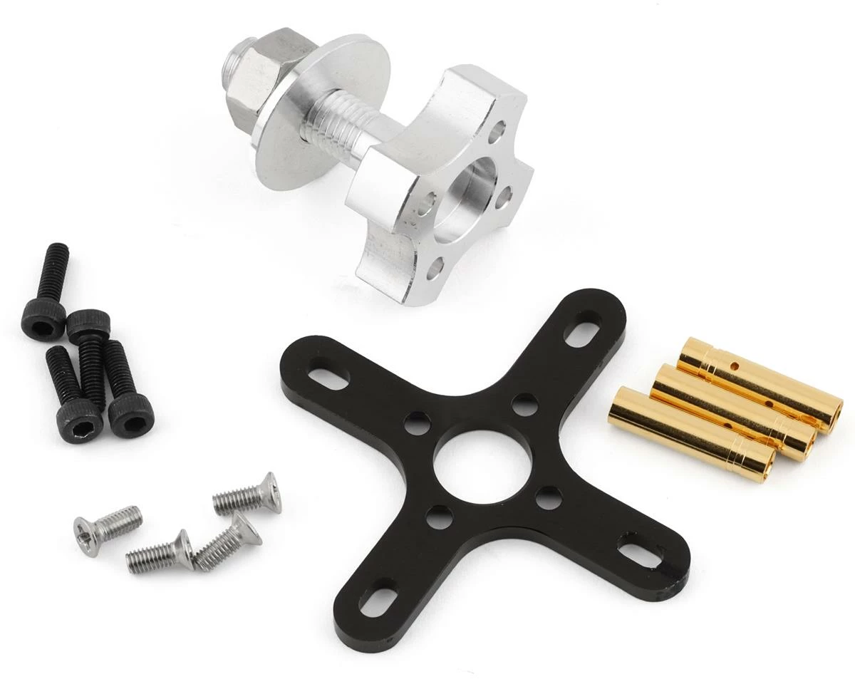- Includes all required hardware: preinstalled gold plated bullet connectors, aluminum motor mount, prop adapter and female ESC connectors
