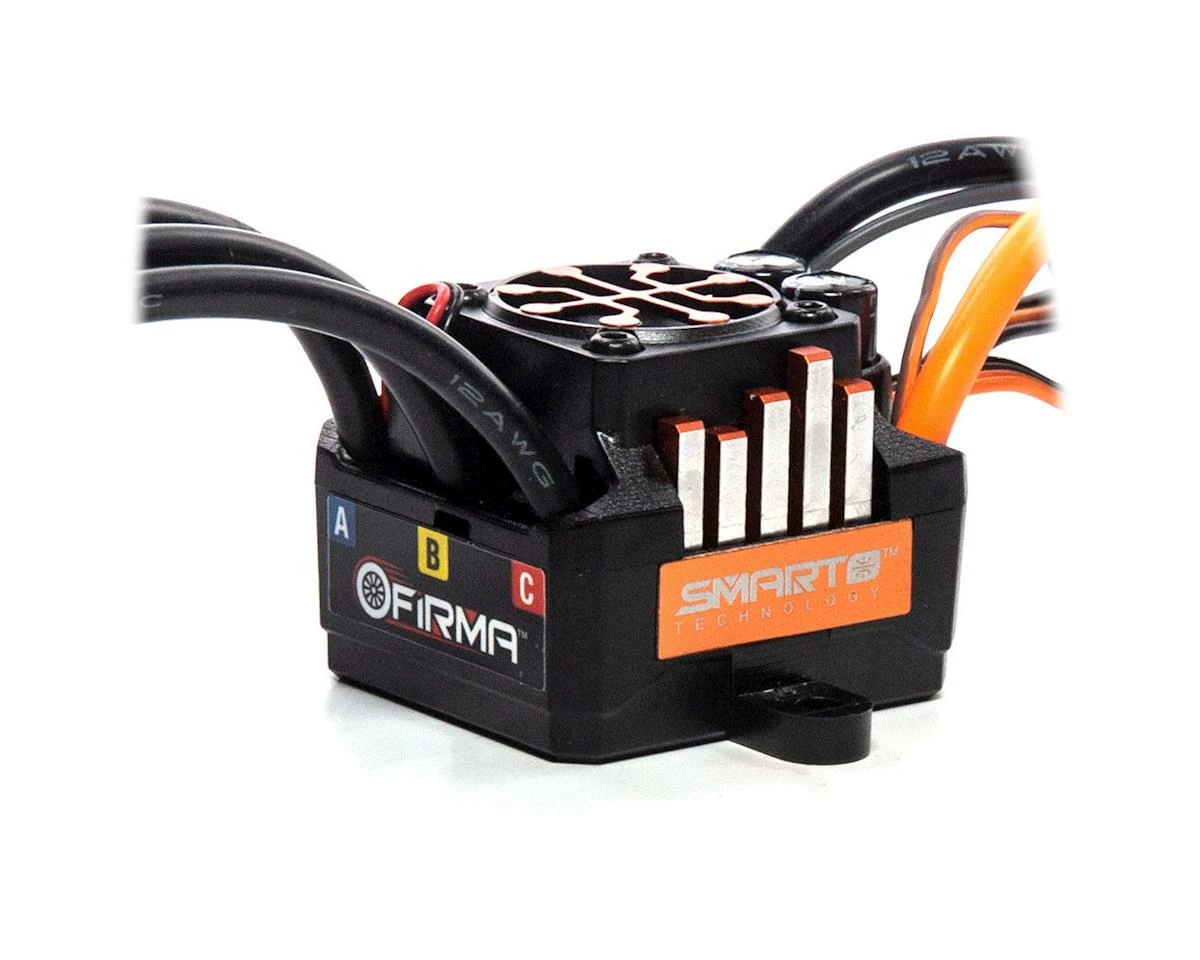 The Spektrum Firma 4S 120 Amp Brushless Smart ESC combines “plug-and-play” simplicity with the ability to communicate with other Smart electronics — together, creating the best-performing RC system for your vehicle imaginable.