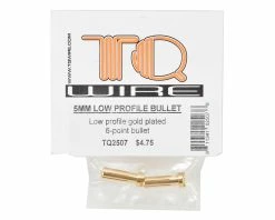 This is a pack of two TQ Wire 4mm Diameter, 18mm Long HD Bullet Connectors. TQ 4MM HD 6-Point Bullet 18mm length – 6 point contact base with a Heavy Duty taller crown and deeper recess for soldering. These are a snug fit and better connection for rough service conditions and for use on charger output ports, distribution boxes etc. They’re only 1 gram heavier per pair than our low profile 18mm bullets. Fits all standard battery tubes but not RevTech and Reedy packs.