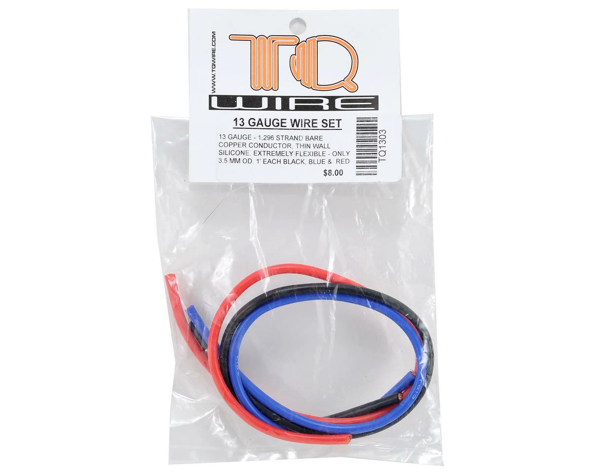 The TQ Wire line of Silicon Wire has been developed specifically for the RC market. Made from ultra-thin strands of copper, this wire is very flexible and ready for use in a variety of applications. Available in multiple color and gauge options. Please select the gauge you need from the list above. Package includes three lengths of wire.