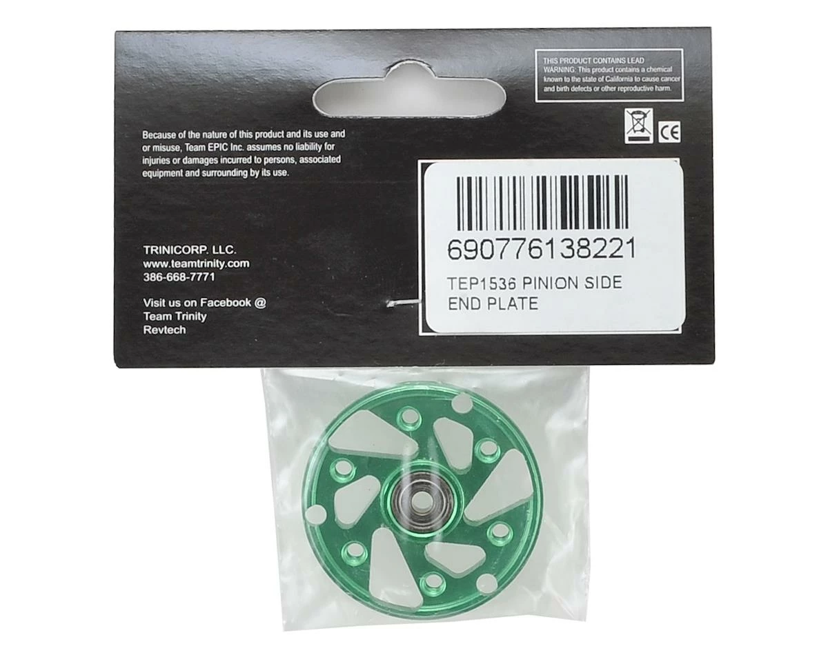 Trinity Monster Horsepower Pinion Side Plate. Package includes replacement motor endbell with factory installed ball bearing.